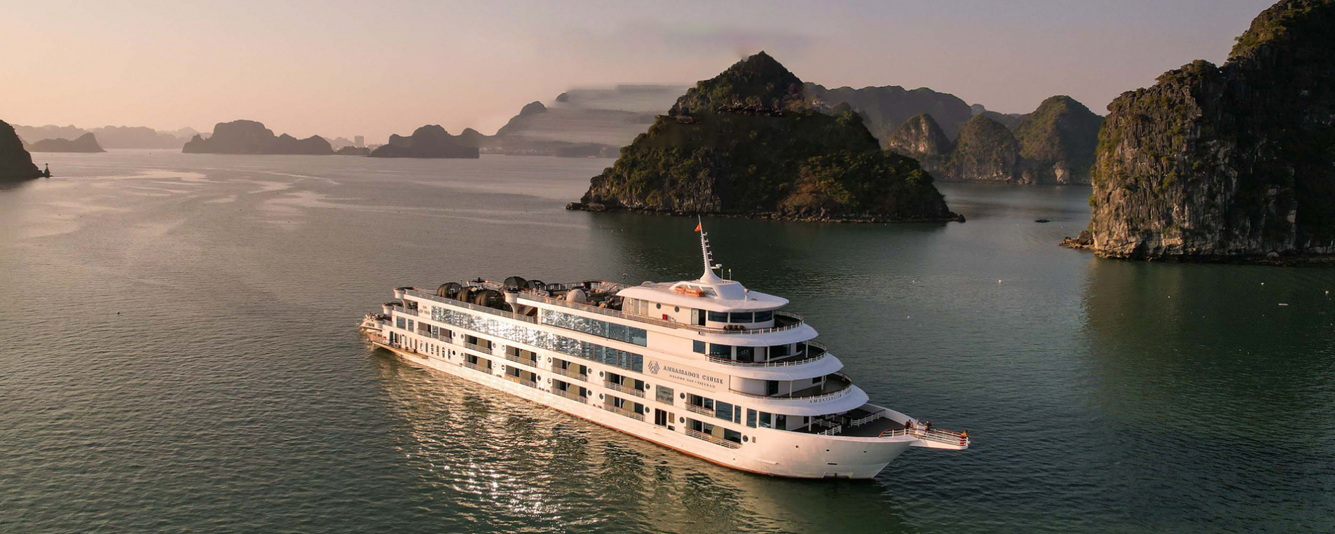 Ambassador Overnight Cruise là du thuyền nghỉ đêm sang trọng rộng rãi nhất tại Vịnh Hạ Long, với 46 cabin xa hoa có ban công hoặc sân hiên riêng. Được bổ sung thêm hai boong tắm nắng toàn cảnh, một nhà hàng cao cấp, phòng chờ piano du dương, quầy bar, hồ bơi Jacuzzi ngoài trời và spa trẻ hóa, du thuyền đảm bảo mang đến trải nghiệm toàn diện.