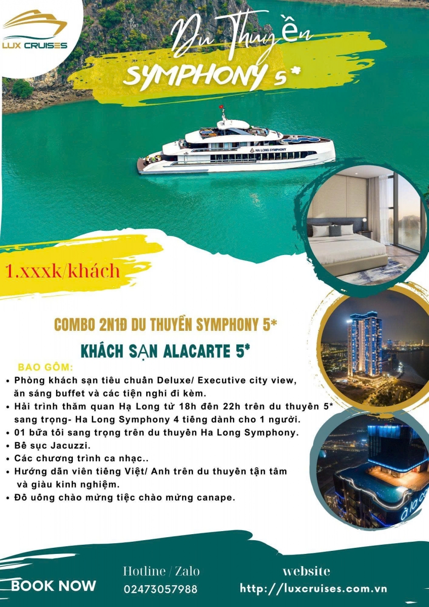 Combo 2N1Đ du thuyền Symphony 5* + Khách sạn Alacarter 5*