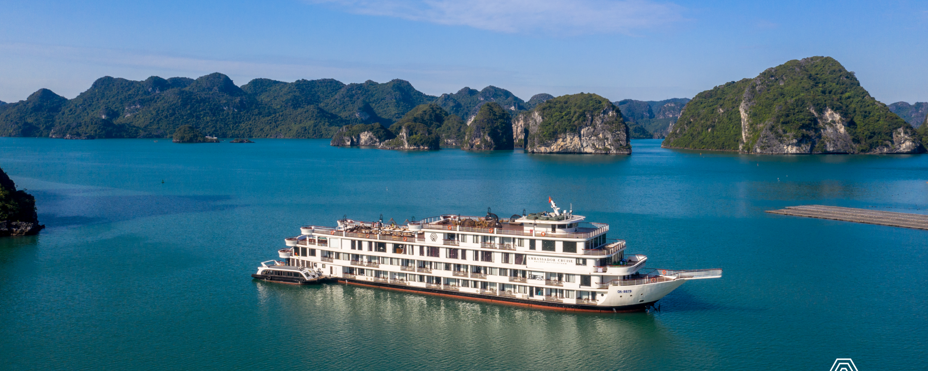 Du thuyền Ambassador I là du thuyền ngủ đêm 5 sao cao cấp bậc nhất tại Vịnh Hạ Long, sở hữu 46 cabin sang trọng với ban công/sân ban công riêng cùng sundeck đôi 360 độ, nhà hàng hạng sang, sảnh Piano, quầy bar, bể sục Jacuzzi ngoài trời, spa, mang đến cho du khách những trải nghiệm nghỉ dưỡng trọn vẹn giữa miền Di sản.