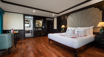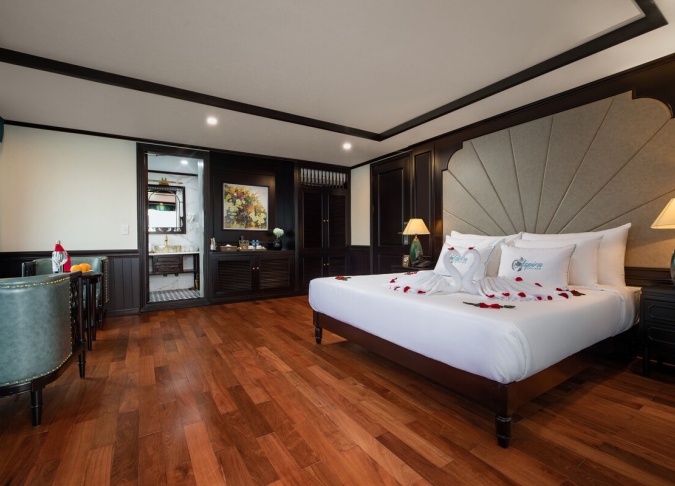 12:30 – 12:45: Quý khách lên du thuyền Aspira sẽ được chào đón một cốc nước ép mát với khăn lạnh trên tàu trong khi nghe hướng dẫn an toàn trên tàu trước khi nhận phòng.