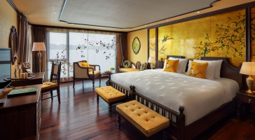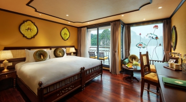 Là tuyệt tác độc bản không trùng lặp, Indochine Premium nổi bật giữa vịnh với kiến trúc Đông Dương sang trọng, nơi mỗi chi tiết được chế tác thủ công tỉ mỉ - từ tranh sơn mài truyền thống đến hệ thống nội thất gỗ cao cấp - tạo nên một không gian nghỉ dưỡng đầy cảm hứng và đậm dấu ấn nghệ thuật. Được vận hành bởi Indochina Sails - thương hiệu du thuyền uy tín với hơn 30 năm kinh nghiệm, Indochine Premium cam kết mang đến hành trình nghỉ dưỡng đẳng cấp, từ các tuyến tham quan Vịnh Hạ Long được chọn lọc kỹ lưỡng đến ẩm thực fine dining đặc sắc, bao gồm tiệc buffet phong phú và set menu tinh tế được phục vụ trong không gian sang trọng.