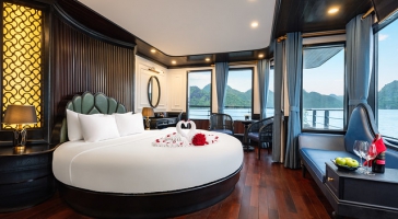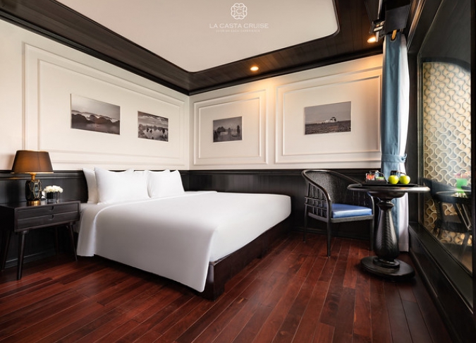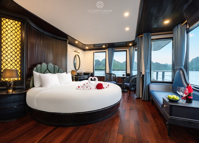 Chỉ với 22 cabin sang trọng trên tàu với diện tích nhỏ nhất là 28 m2, du thuyền hứa hẹn sẽ mang đến cho bạn trải nghiệm tuyệt vời nhất trên vịnh. Nhờ kiến trúc độc đáo, tất cả các cabin trên Du thuyền La Casta đều có tầm nhìn toàn cảnh ra biển và ban công riêng để bạn có thể ngắm nhìn toàn cảnh vịnh. Có 4 lựa chọn về loại phòng, cụ thể là Junior Suite, Senior Suite, Family Suite, VIP Suite (Honeymoon Suite) có sân hiên riêng – mỗi loại đều có những ưu điểm riêng và phù hợp với một nhóm du khách cụ thể. Mọi chi tiết từ tiện nghi đến tiện ích công cộng đều được trang bị đầy đủ nhằm mang đến những trải nghiệm thoải mái, ấm cúng và hài lòng nhất cho khách hàng như hồ bơi Jacuzzi ngoài trời, dịch vụ spa làm đẹp, tiệc theo chủ đề theo yêu cầu, dịch vụ đón bằng xe Limousine (theo yêu cầu), quầy bar và nhà hàng sang trọng, v.v.