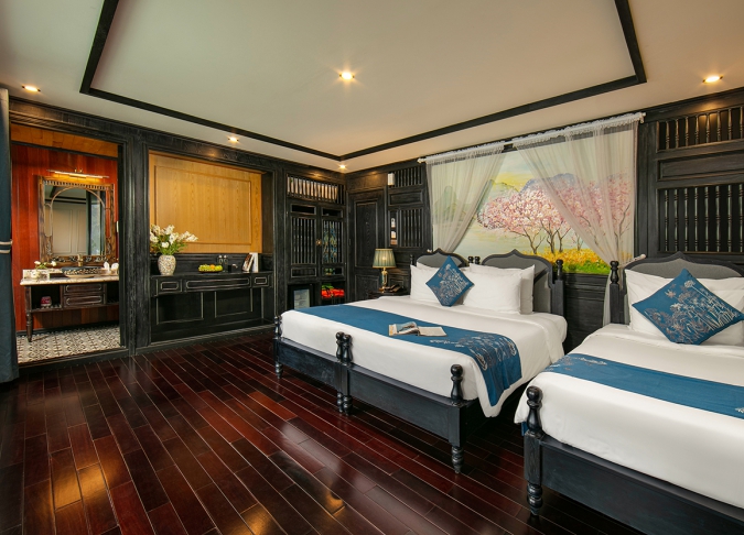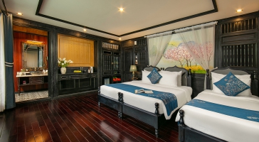 Xuất hiện như một “vì sao sáng” giữa hàng trăm du thuyền tại vịnh Lan Hạ, La Regina Grand chắc chắn là một kiệt tác nghỉ dưỡng di động trên mặt nước mà du khách không thể bỏ qua cho chuyến hải trình chinh phục kỳ quan thiên nhiên. Lấy cảm hứng thiết kế từ những nét đẹp mang đậm dấu ấn Đông Dương thời kỳ những năm 1930, du thuyền La Regina Grand sở hữu vẻ hài hòa giữa phong cách hiện đại và cổ kính tạo nên không gian sang trọng không khác gì một cung điện hoàng gia trên biển xanh. Nội thất trên du thuyền hoàn toàn bằng gỗ đem lại cảm giác ấm áp, cổ điển, vô cùng quyến rũ nhưng vẫn đảm bảo tiện nghi tối đa cho du khách. Mỗi một góc nhỏ trên du thuyền đều được thiết kế tinh tế, tỉ mỉ với đường nét trang trí mang theo vẻ đẹp truyền thống văn hóa nổi bật.