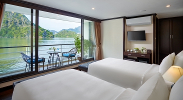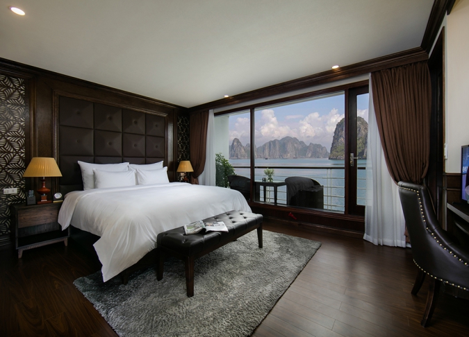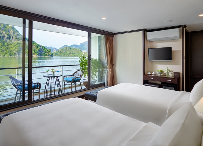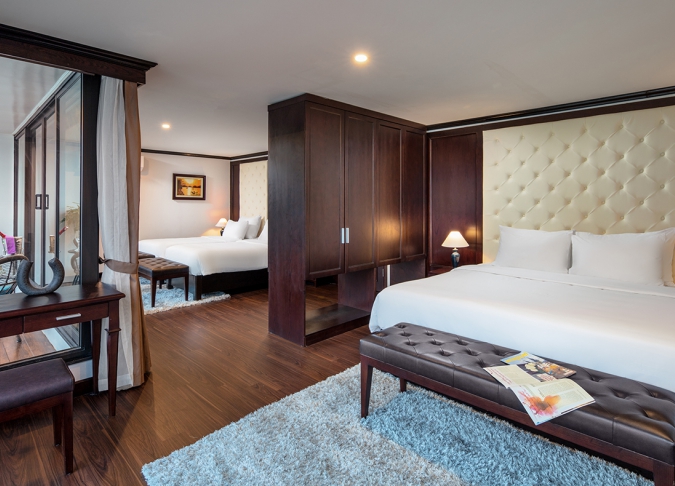 • Phòng theo tiêu chuẩn trên du thuyền.