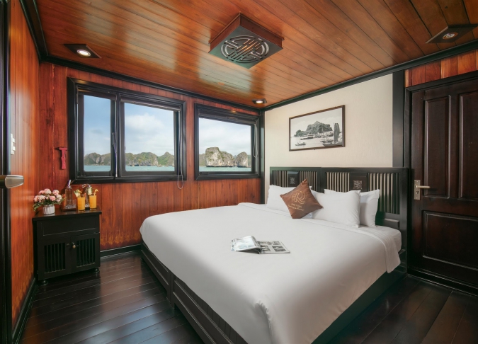 19:00′: Bữa tối sẽ được phục vụ với các món hải sản địa phương. Sau bữa tối, bạn có thể chọn thưởng thức đồ uống tại quầy bar hoặc boong tàu hoặc trải nghiệm câu mực trước khi nghỉ ngơi.