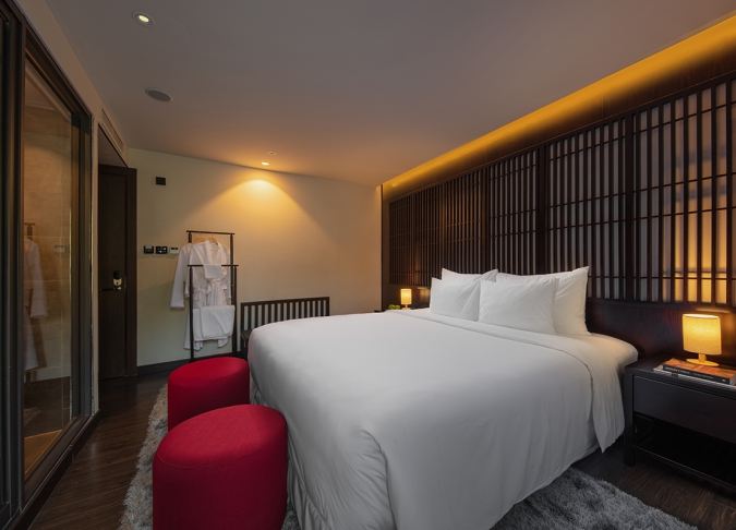 Phòng có dịch vụ quản gia, cửa sổ ngắm cảnh rộng lớn, phòng tắm liền kề với bồn tắm và vòi sen, cùng những tác phẩm nghệ thuật và trang trí độc đáo.
