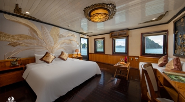 Du thuyền Treasure Junks đến Vịnh Bái Tử Long, một lựa chọn thay thế ít người biết đến và yên tĩnh hơn Vịnh Hạ Long, mang đến trải nghiệm yên bình và tách biệt hơn cho những ai tìm kiếm sự tĩnh lặng và vẻ đẹp tự nhiên.