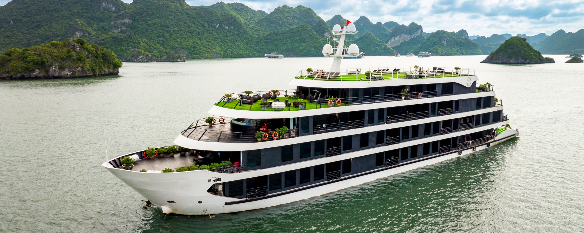 Tour du thuyền Hạ Long Venus Cruise 5 sao tại Vịnh Lan Hạ sẽ mang đến cho bạn một trải nghiệm nghỉ dưỡng đẳng cấp giữa khung cảnh tuyệt đẹp của vịnh biển xanh biếc, những hòn đảo đá vôi hùng vĩ và không gian yên bình, thơ mộng. Hạ thủy với thiết kế hiện đại và sang trọng, du thuyền Venus Cruise là sự kết hợp hoàn hảo giữa tiện nghi cao cấp và thiên nhiên hoang sơ, mang đến cho du khách một hành trình đáng nhớ.