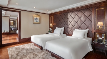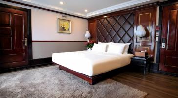 12:30 – 13:00 Quý khách lên tàu, thưởng thức đồ uống chào mừng trong lúc Quản lý tàu phổ biến hành trình và các thông tin quan trọng trong chuyến đi, hướng dẫn an toàn, sau đó làm thủ tục nhận phòng.