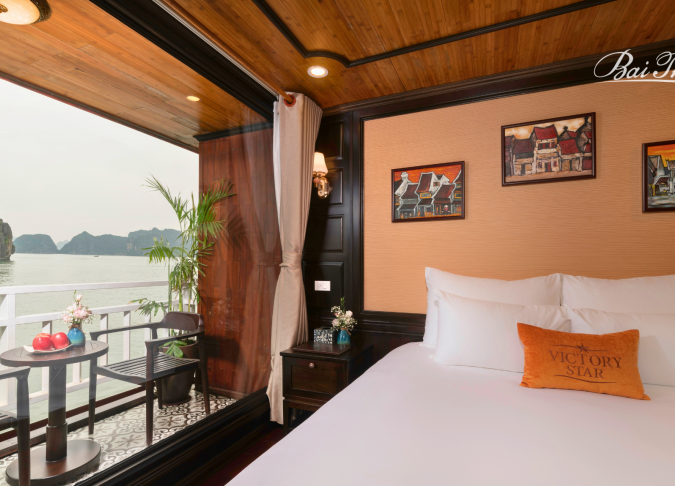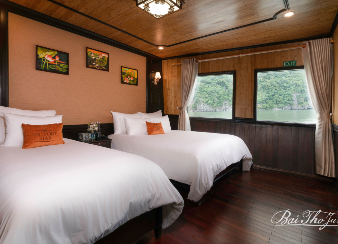 Du thuyền Victory Star là một trong những du thuyền được đóng mới bằng kim loại đầu tiên trên Vịnh Hạ Long, là niềm tự hào của Công ty Vận Chuyển khách Bài Thơ. Với 2 du thuyền 32 phòng & 24 phòng, Victory Star mang đên cho du khách kỳ nghỉ trong một không gian sang trọng, tiện nghi, đậm chất văn hoá Việt Nam.