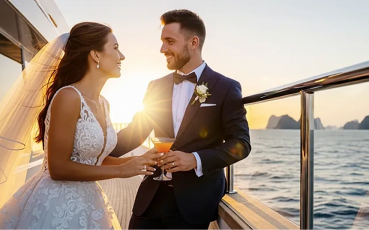 LuxCruises tự hào mang đến dịch vụ Lễ cưới & Tiệc kỷ niệm trên du thuyền Hạ Long, nơi mỗi khoảnh khắc đều được nâng tầm với không gian sang trọng giữa kỳ quan thiên nhiên thế giới. Với du thuyền đẳng cấp, phong cách phục vụ tinh tế và đội ngũ chuyên nghiệp, Luxcruise giúp bạn tạo nên một buổi lễ lãng mạn, riêng tư và đầy cảm xúc.